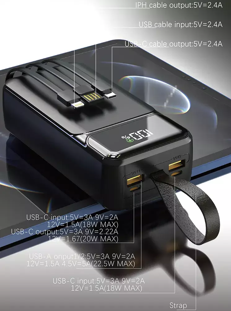 باور بانك بســعة 50000 مللي وبقـوة 22.5 واط مـع كيبـل من اسبور