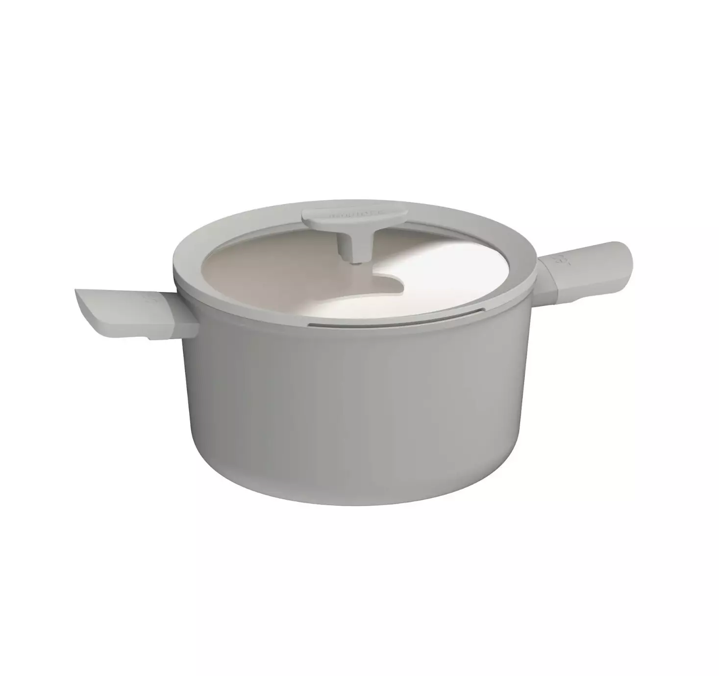 If you’re rustling up a big batch of homemade soup or a tasty stew in this 100% recycled aluminium stockpot, you’ll no doubt appreciate the pot’s fast and even, energy-efficient heat distribution on any kind of stovetop, including induction. The high-quality, sustainable and healthy ceramic non-stick coating ensures an easy food release and the soft-touch stay-cool handles are equipped with a comfortable grip and the knob of the glass lid is equipped with a spoon rest knob. Want to make sure all those delicious flavours are preserved and you don’t lose any valuable energy? Just use the clear glass lid that allows you to keep an eye on your food without having to lift the lid and comes with a drain hole so you can easily strain the pot’s contents if needed.
