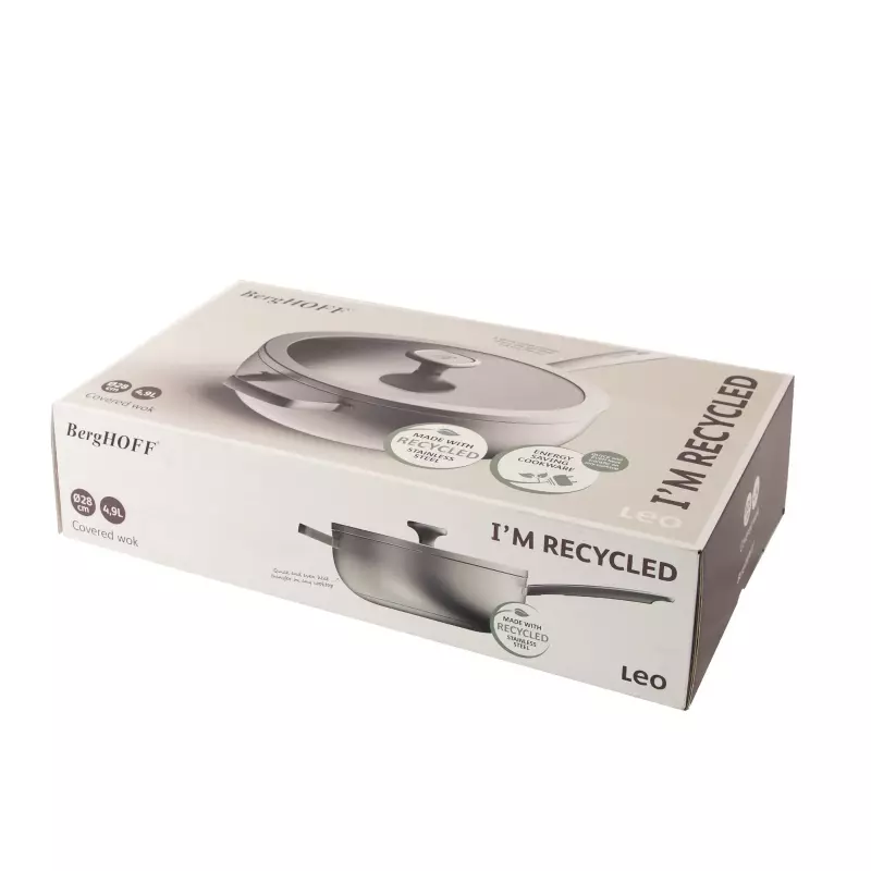 Want to make quick and healthy one-pan meals for the entire family? Then this recycled stainless steel wok is your go-to kitchen assistant. A full disk bottom ensures a fast and even heat distribution on any kind of cooktops and is ovenproof up to 250°C. The covered wok is a versatile piece of cookware that you’ll reach for time and again. It’s sturdy stainless steel handle makes easy work of tossing and serving your ingredients while a special surface treatment ensures easy food release and easy cleaning.