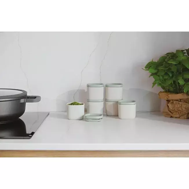 Spices, candy, biscuits, flour,... keep it all fresh and tasty with a little help from these stackable food containers. The large 2-pc container set can be extended with our 6-pc small food & spices container set. The large opening guarantees easy access to the container content. On top of that, the containers are stackable and designed in a square shape for optimal space saving. The containers are anti-skid and dishwasher safe so cleaning them is a breeze! Thanks to the transparent window on top you can check the content at all times. With our future in mind, our containers are made with recycled plastics for a greener and more sustainable cooking experience. Enjoy cooking and spice things up with our practical food container set!