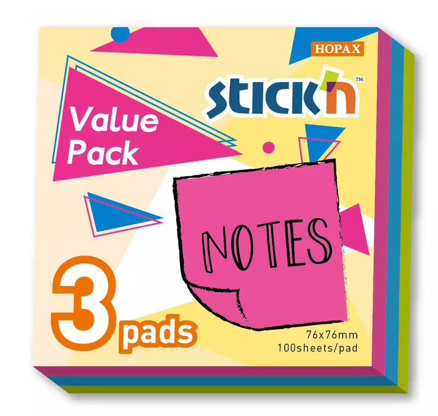 بـاقة من 3 - ورق ملاحظات 3 لون قياس 3*3
