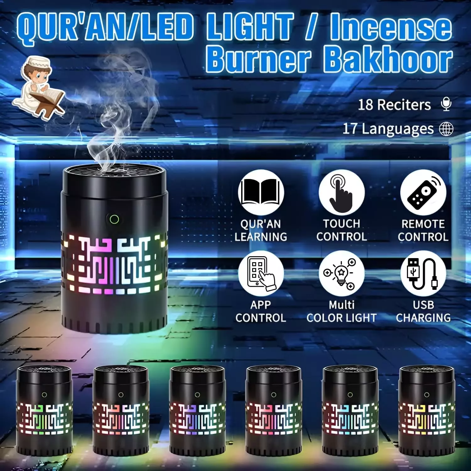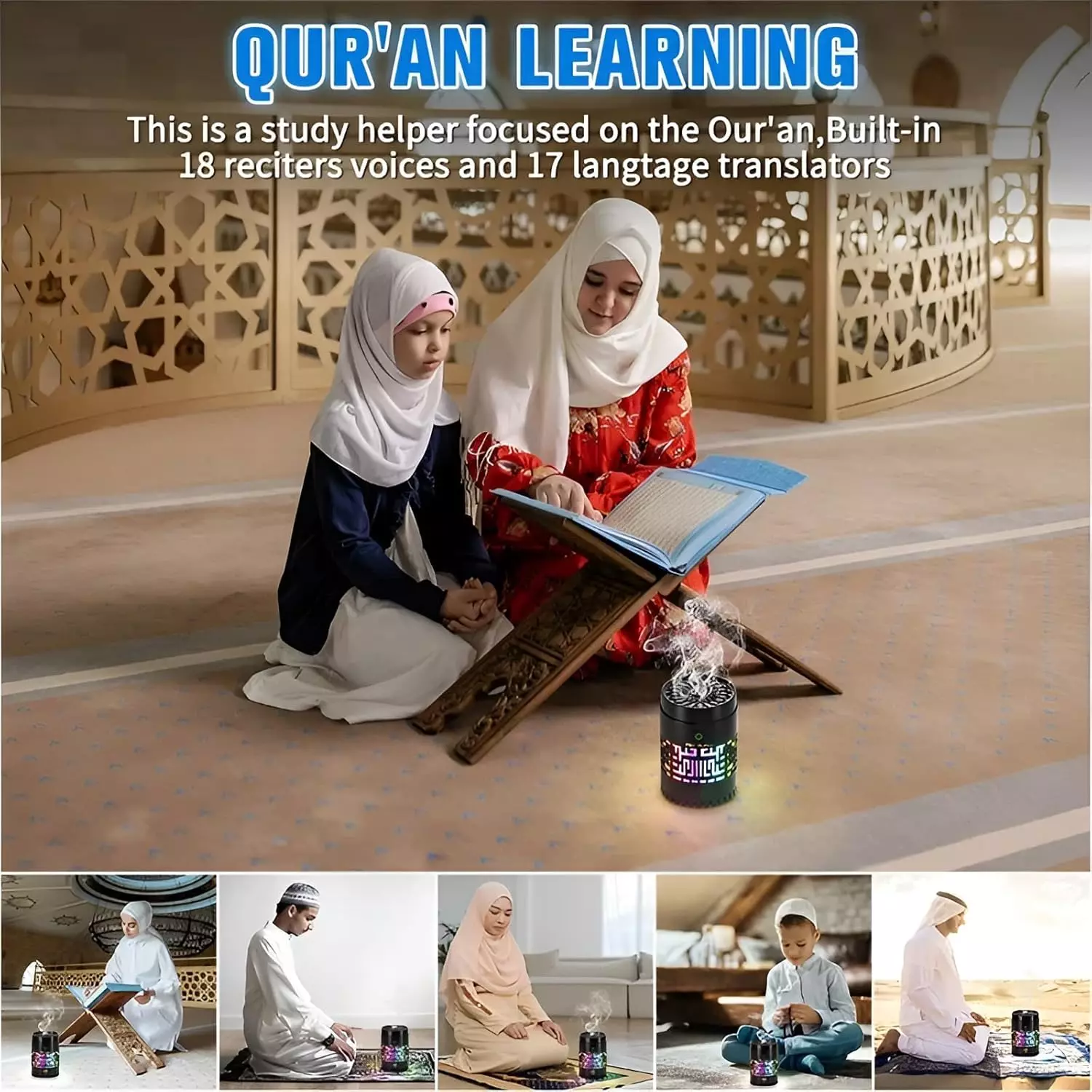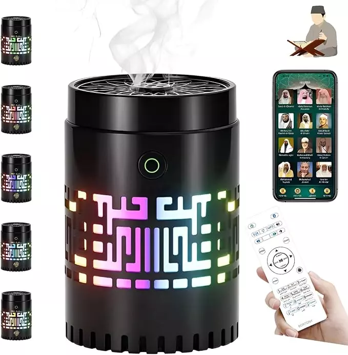 وظائف متعددة الاستخدامات: يعمل كموقد بخور ومكبر صوت للقرآن الكريم للاستخدام متعدد الأغراض. يتميز بإضاءة وقدرات تعلم القرآن الكاملة للاستخدام الشامل.