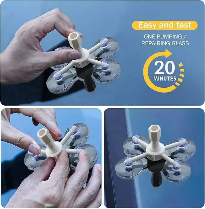 تصميم بتفريغ الهواء: قم بتنظيف الشقوق قبل حقن سائل الإصلاح، والذي يمكنه إزالة الهواء من الشقوق بسرعة، بحيث يكون الزجاج الأمامي الذي تم إصلاحه ثابتًا وجميلًا.
