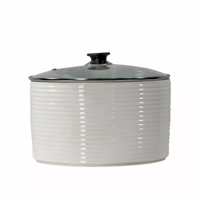 إناء لحفظ سخونة الطعام من السيراميك 25 سم مع غطاء شفاف - (منتج جديد بدون كرتون)