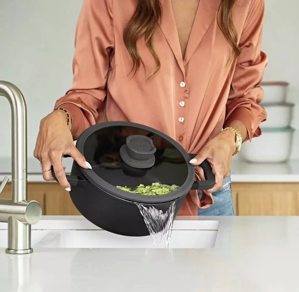 • Included removable silicone sleeves ensure you to safely take pots out of the oven and safe straining of boiling water