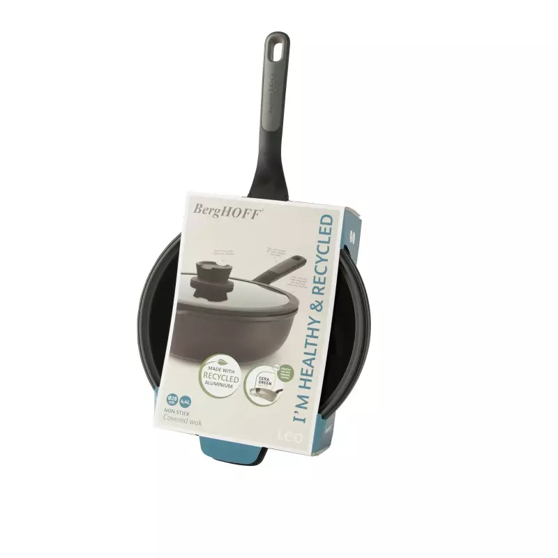 Anyone in the mood for a tasty stir-fry? With this covered wok, you’ll create the most delicious treats in no time! The recycled cast aluminium body guarantees a fast and even heat distribution on any kind of cooktop and is covered with a high-quality, healthy ceramic CeraGreen non-stick coating that not only allows you to cook with a minimal amount of oil but also makes the pan a breeze to clean. The bottom of the wok allows both liquid and heat to concentrate in one spot, while the high, sloping walls help retain heat for an optimal fast cooking. Add to this the phenolic handle with silicone insert and the clear glass lid that comes with an integrated straining and spoon rest function, and you’ve got a wok that excels in user-friendliness.
