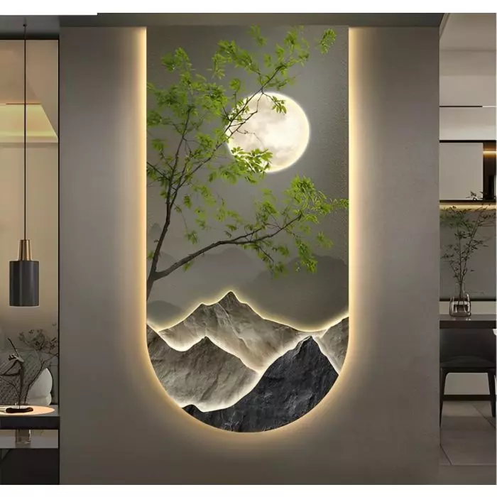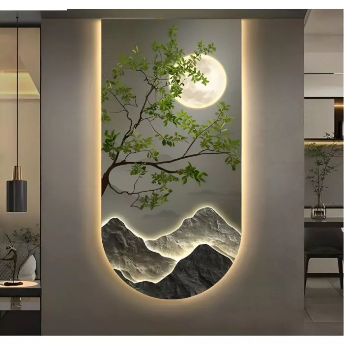 قطع فنية معاصرة تجمع بين أناقة الزجاج وحيوية إضاءة LED. تتميز بتصميم سماء ليلية فاخرة ومناظر طبيعية من خشب الصنوبر. تتميز هذه الأعمال الفنية بألواح زجاجية أنيقة مزينة بتصميمات معقدة أو صور آسرة، مضاءة بأضواء LED مدمجة.