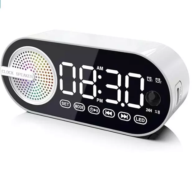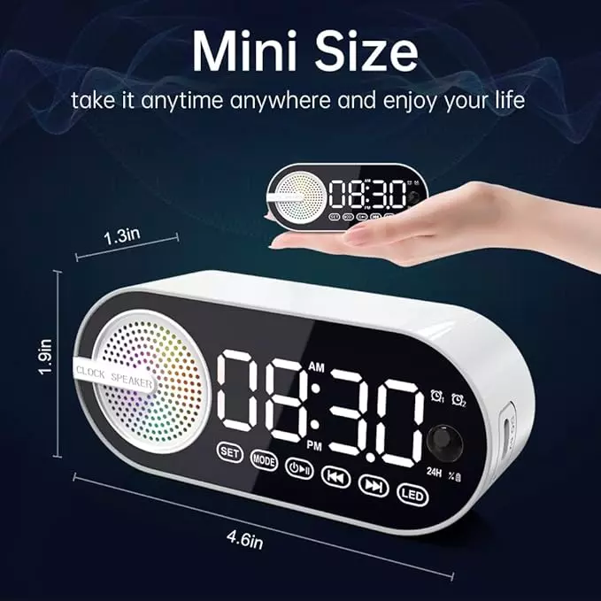 تصميم أنيق: تم تصميم مكبر الصوت البلوتوث هذا مع وضع كل من الأناقة والعملية في الاعتبار، ويضيف لمسة من الأناقة إلى أي غرفة. تصميمه الأنيق والمدمج يجعل من السهل وضعه على طاولة بجانب السرير أو المكتب أو الرف، ويمتزج بسلاسة مع أي ديكور. توفر شاشة LED رؤية واضحة حتى في البيئات ذات الإضاءة الخافتة.