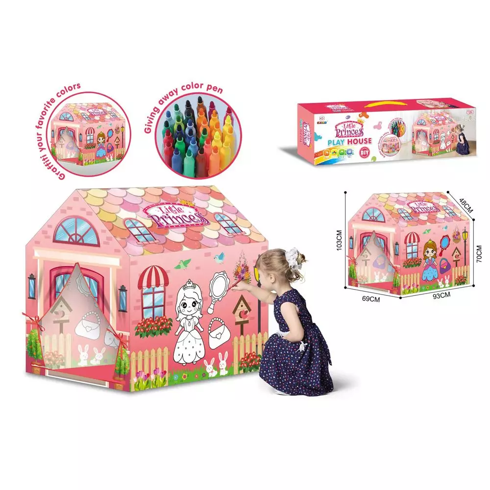 أطلق العنان لإبداع طفلك مع بيت ألعاب Graffiti Princess Tent Game House! تسمح خيمة اللعب الفريدة هذه للأطفال بتخصيص مخبأ خاص بهم على طراز الأميرة. يأتي مع 12 قلم تلوين، مما يوفر إمكانيات لا حصر لها للتعبير الفني. الخيمة سهلة التجميع، مصنوعة من مواد عالية الجودة، وتوفر مساحة مريحة للعب الخيالي. أطلق العنان لخيال طفلك الصغير بينما يقوم بتزيين قلعة الأميرة الخاصة به ويخلق مغامرات سحرية في بيت الألعاب الفريد من نوعه