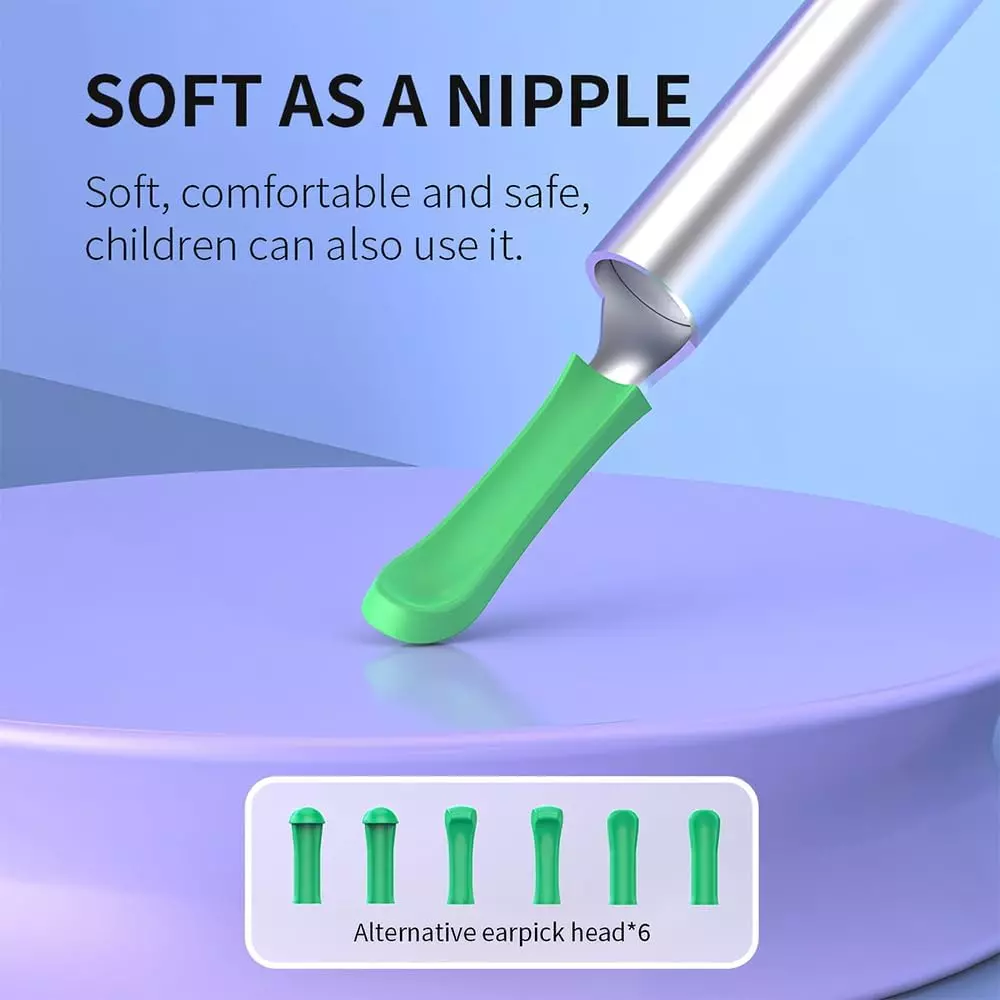 • رأس سيليكون آمن: يأتي مع رأس ملعقة سيليكون ناعمة وآمنة لتنظيف الأذن بشكل مريح وآمن.