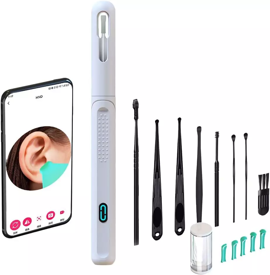 • كاميرا 1080P HD: مزودة بـ 6 أضواء LED لوضوح الرؤية أثناء إزالة شمع الأذن.