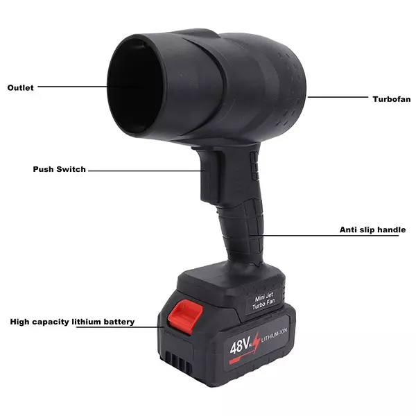 تصميم محمول: منفاخ غبار كهربائي محمول، سهل الحمل والتشغيل دون الحاجة إلى أسلاك، مما يسمح بالاستخدام في الهواء الطلق في أي وقت وفي أي مكان، صغير الحجم وقابل للحمل.