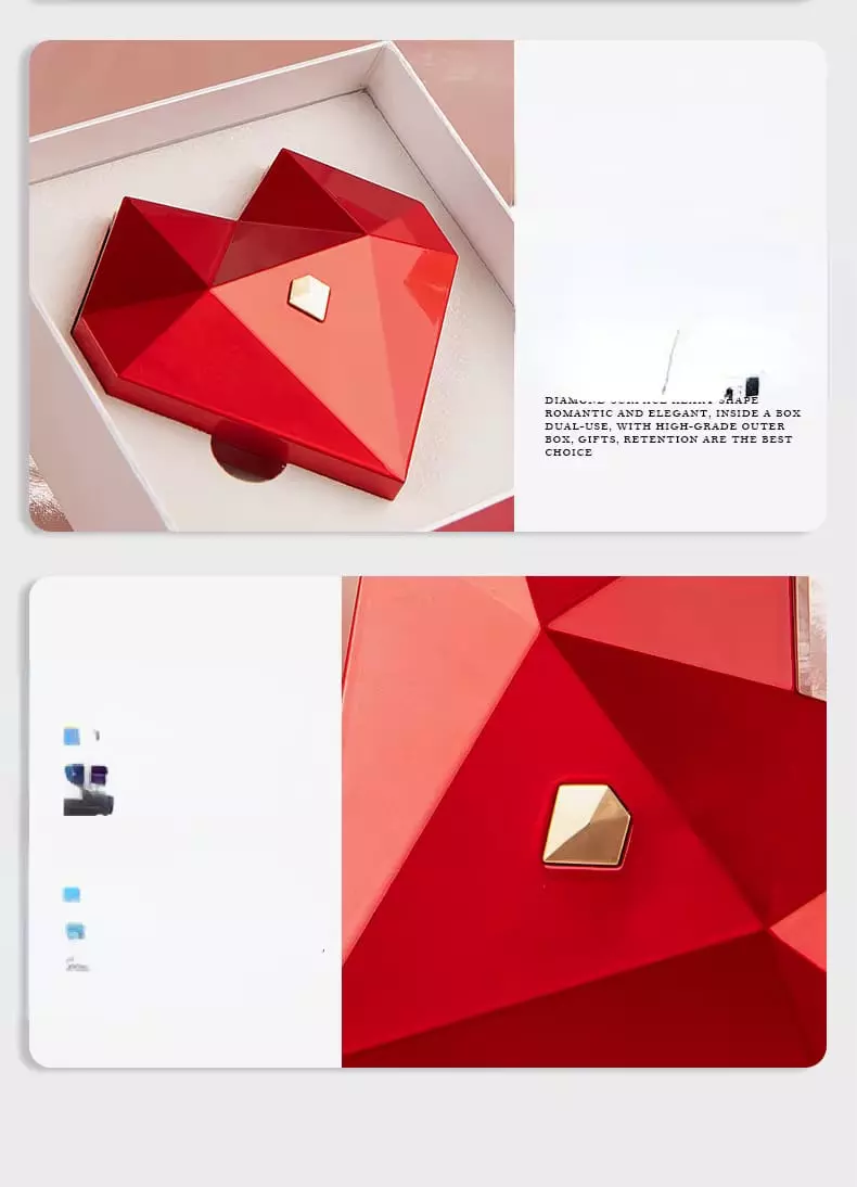 • تصميم فاخر وأنيق: شكل هندسي مبتكر على هيئة قلب بلمسات عصرية تعزز من جمال العرض.