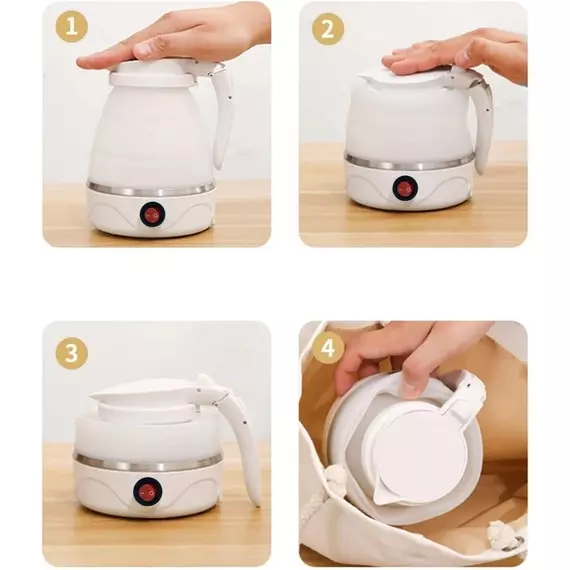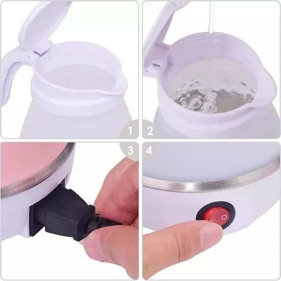 غلاية كهربائية آمنة للطعام مصنوعة من السيليكون الصالح للطعام، خالية من مادة BPA، غير سامة، لا طعم لها ومقاومة لدرجات الحرارة العالية (مقاومة للحرارة حتى 230 درجة مئوية). قاعدة غلاية من الفولاذ المقاوم للصدأ 304 مقاومة للصدأ ومتينة