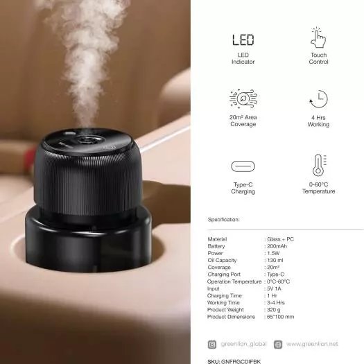 - تتضمن العبوة معطر جو جرين ليون سعة 130 مل، ودليل مستخدم لسهولة الإعداد.