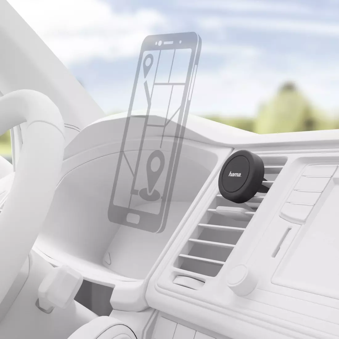 • حامل مغناطيسي لتثبيت الهاتف الذكي بأمان في فتحة تهوية السيارة.