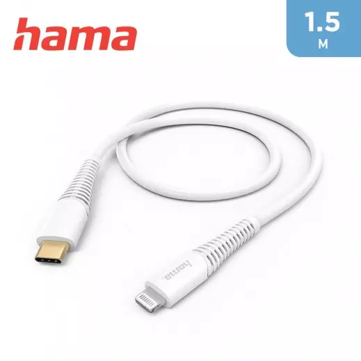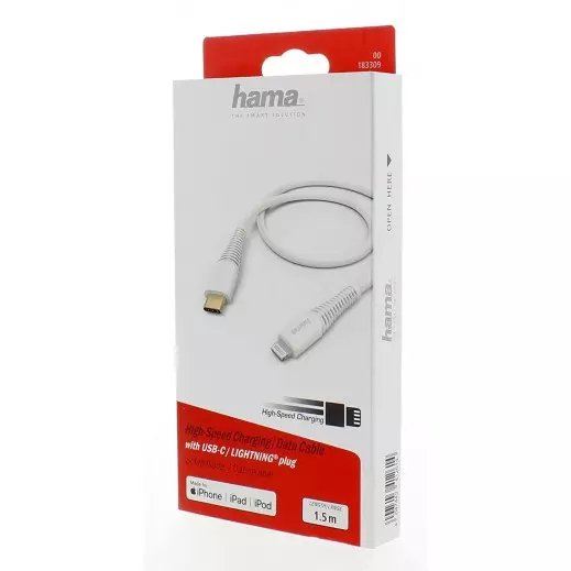 كابل سريع الشحن نوع-C إلى لايتنينج - 1.5 متر - أبيض من هاما