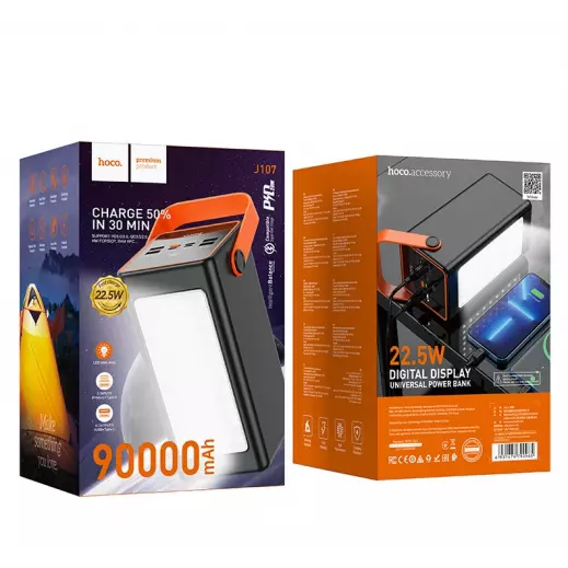 باور بانك متوافق بالكامل 90000 مللي أمبير 22.5 وات- J107- أسود من هوكو