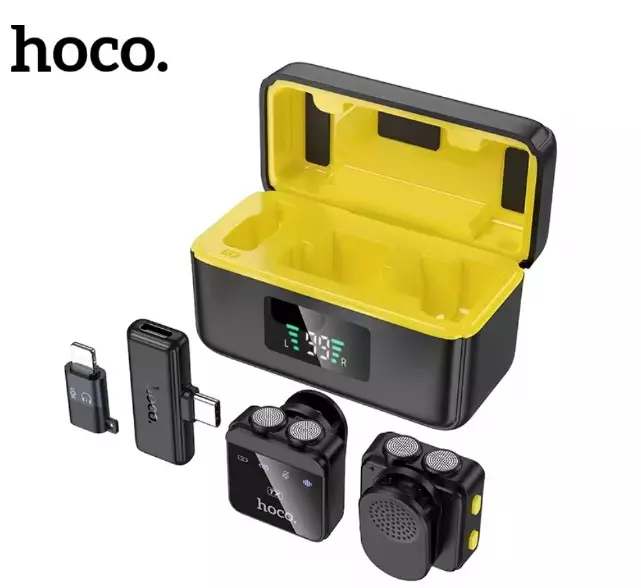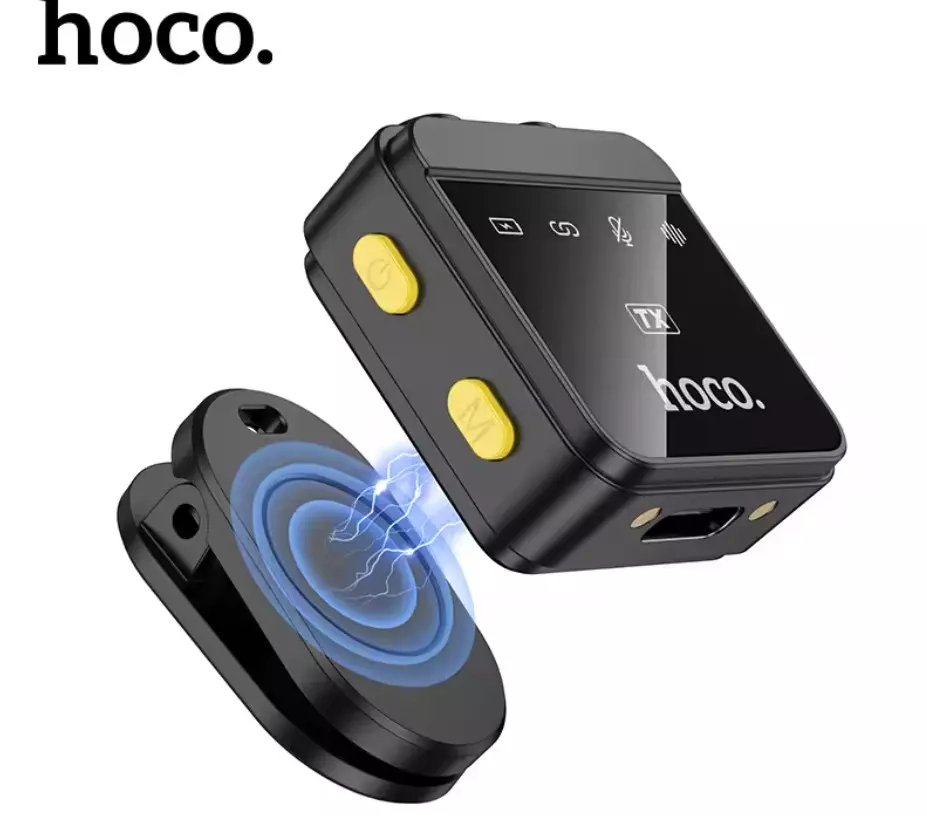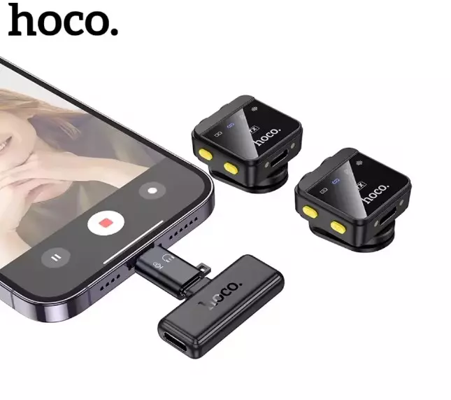 ميكروفون HOCO L17 المغناطيسي اللاسلكي Lavalier Lapel لهاتف iPhone وAndroid من النوع C وتسجيل الألعاب الحية والمقابلات بمشبك مغناطيسي