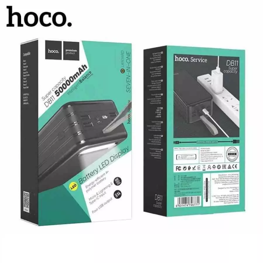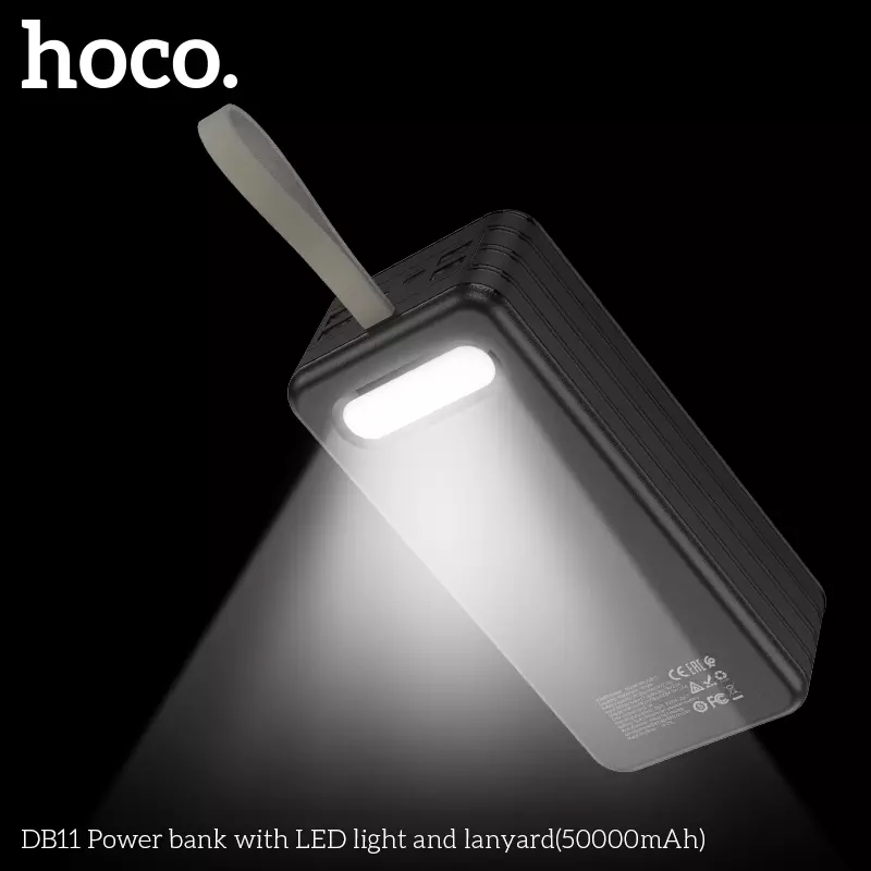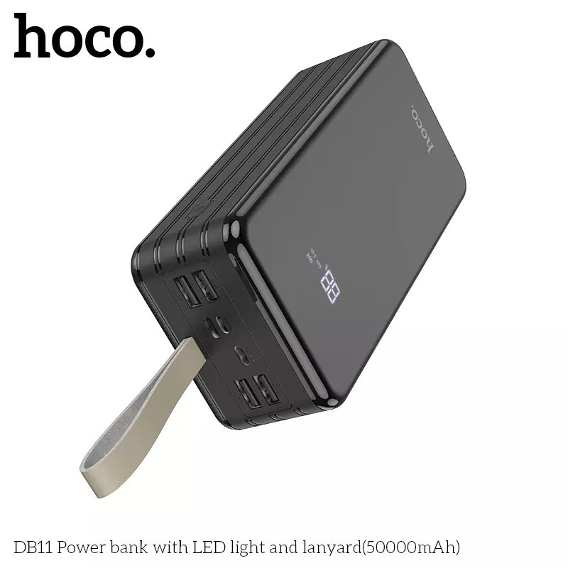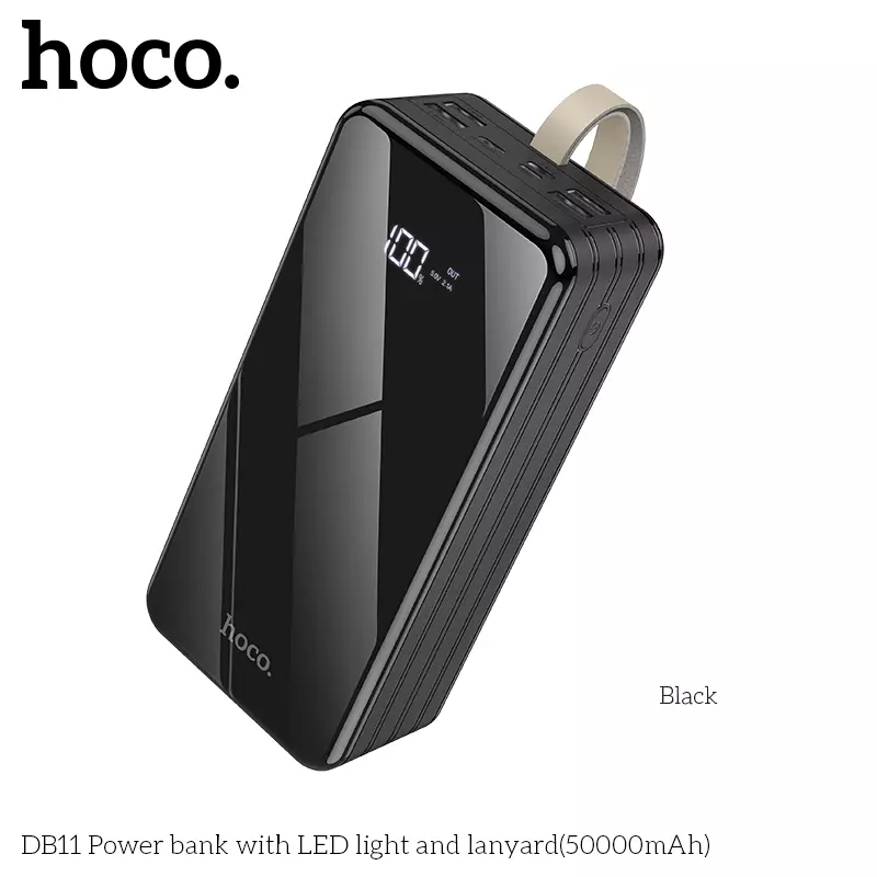باور بانك الـطاقــة بســعة 50000 مللي مـع ضوء LED وحبل تعليق - أسود من هــوكو