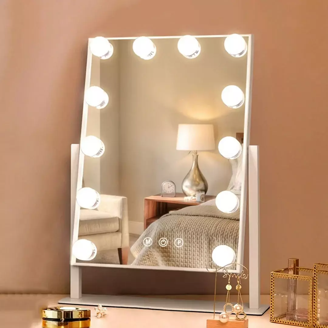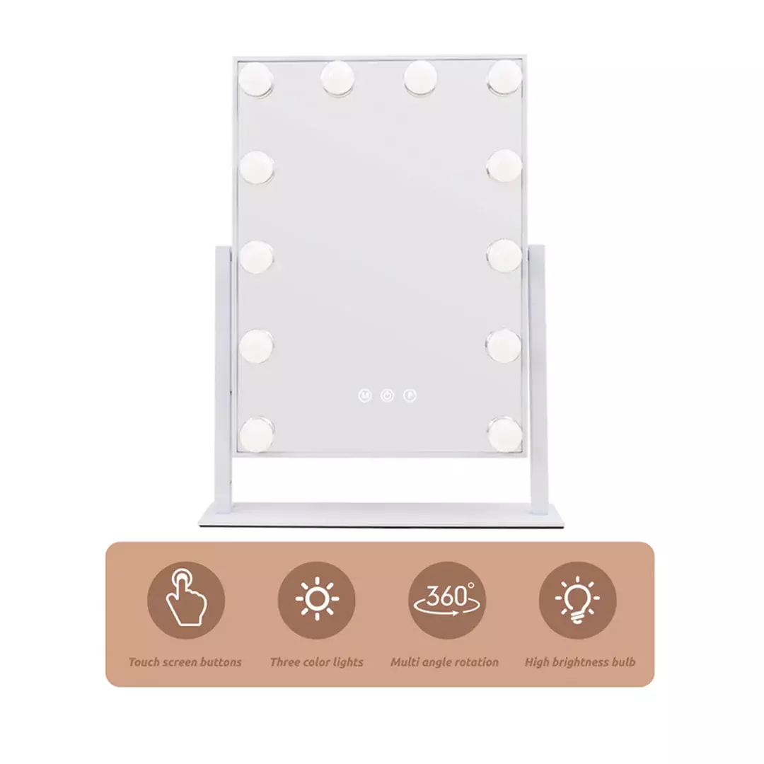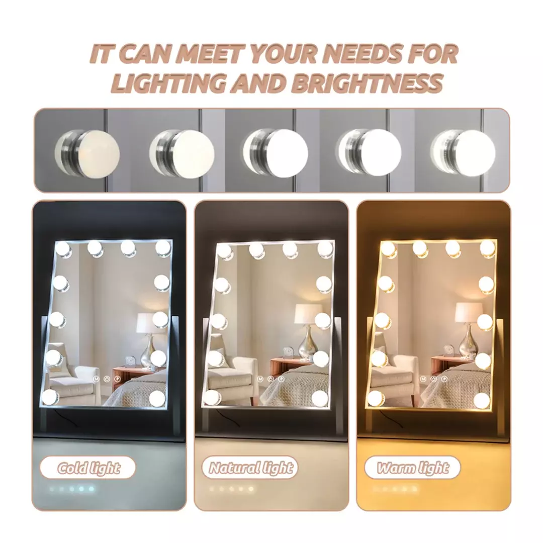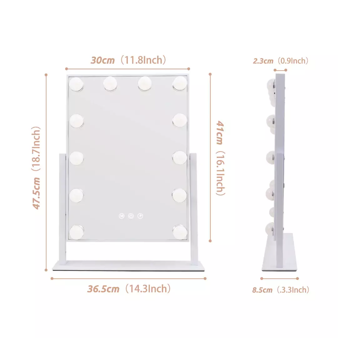 الحجم المثالي: مرآة المكياج 30 سم × 47.5 سم، وهو الحجم المثالي. تعرض مرآة الزينة المضيئة ما يكفي من الأضواء عند وضع المكياج.
