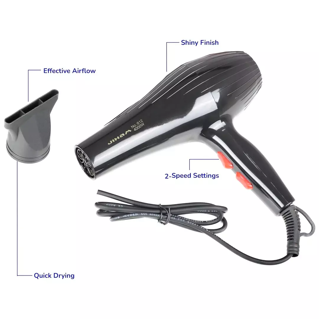 مجفف الشعر هذا مزود بمحرك قوي وإعدادان للسرعة (عالي وإيقاف ومنخفض) لجميع أنواع الشعر لقوة تجفيف فعالة.