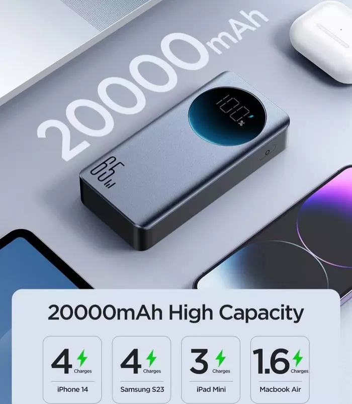 جويروم Jr-pbf04 باور بانك 20000 مللي أمبير شحن سريع للغاية 65 وات - أسود