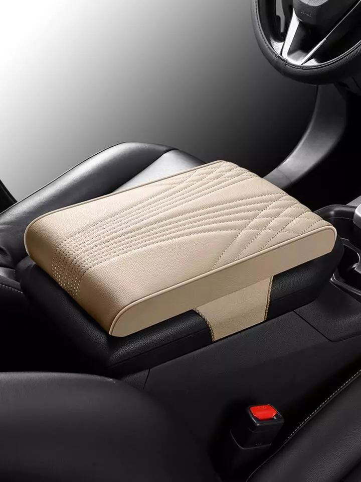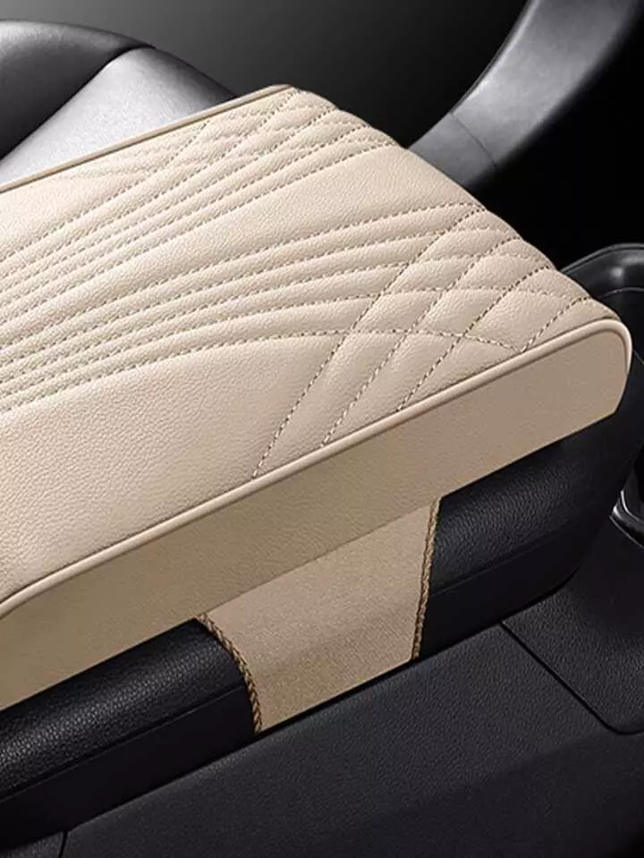 وسادة مسند ذراع جلدية للسيارة - بيج