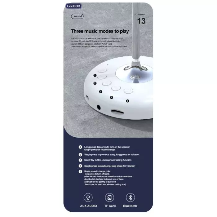 • عناصر تحكم سهلة الاستخدام: أزرار بسيطة لتشغيل الصوت وتبديل الوضع.