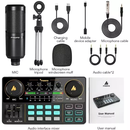 ميكروفون ستوديو للانتاج للبودكاست والألعاب - أسود من ماونوكاستر