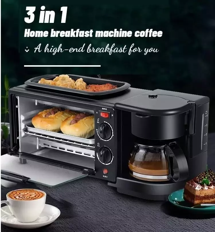 ماكينة تحضير الإفطار 3 في 1، تحضر الإفطار والقهوة وتخبز النقانق في نفس الوقت، توفر وقتك.