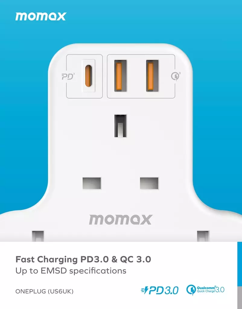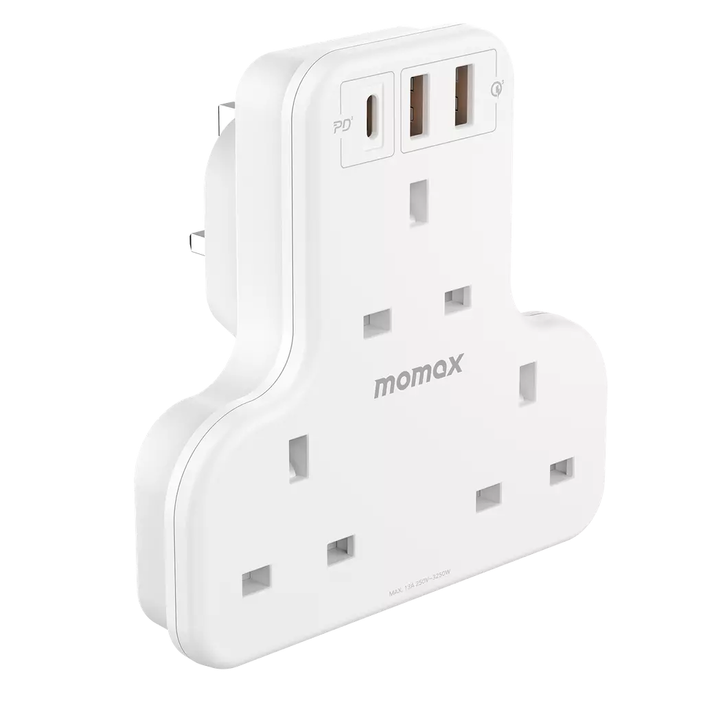 ون بلج 3 مقبس تمديد على شكل T مع USB من موماكس