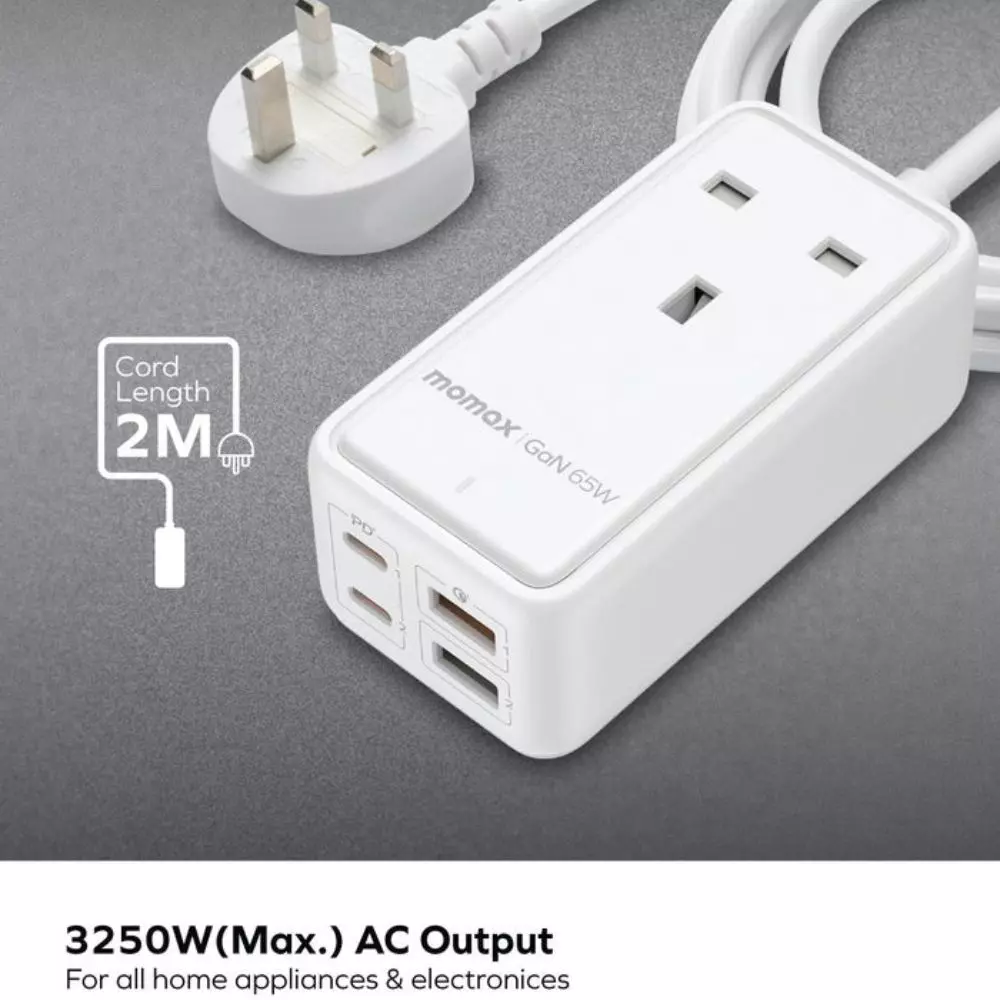 موماكس ون بلج 65 واط سلك تمديد مع موصل طاقة USB - رمادي فلكي