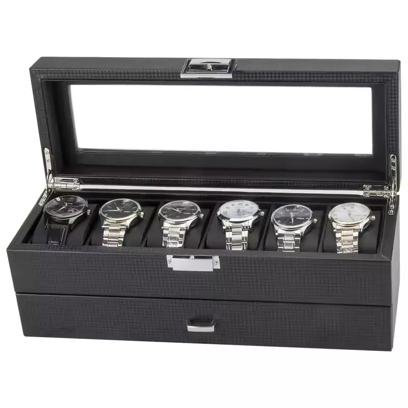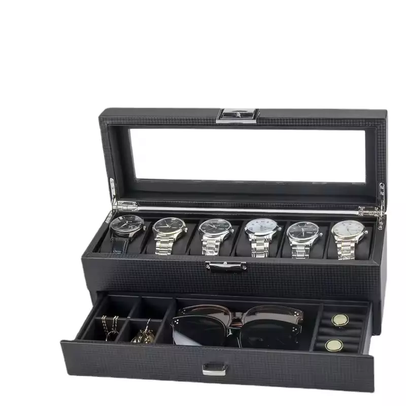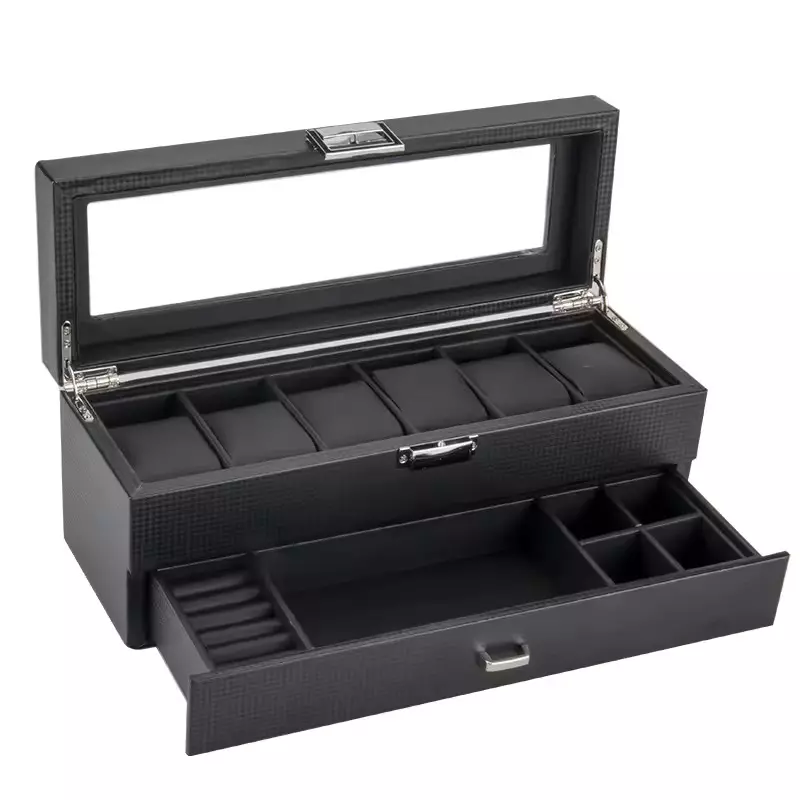 صندوق تخزين متعدد الفتحات للساعات والمجوهرات - أسود