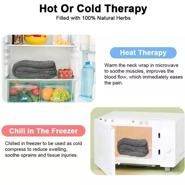 تساعد وسادة تخفيف آلام الرقبة والكتف الساخنة/الباردة على تقليل التورم وتوفر تخفيفًا فوريًا للألم عند التعامل مع آلام الجزء العلوي من الظهر وتيبس الرقبة والإجهاد وتخفيف التوتر دون استخدام مواد تشحيم فوضوية أو مزيلات احتقان محملة بالآثار الجانبية لتخفيف الألم نحو التعافي السريع.