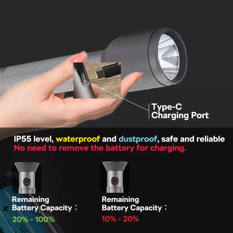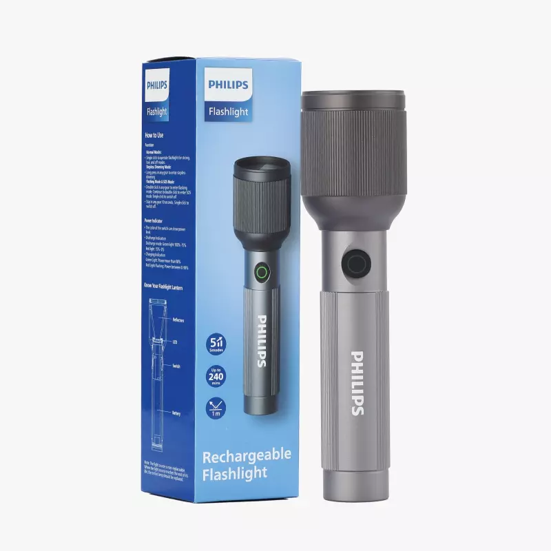 مصباح يدوي LED قابل لإعادة الشحن من سبائك الألومنيوم مقاس 22.5 سم من Philips Aircraft - 650 لومن، نطاق 450 متر، 3000 مللي أمبير