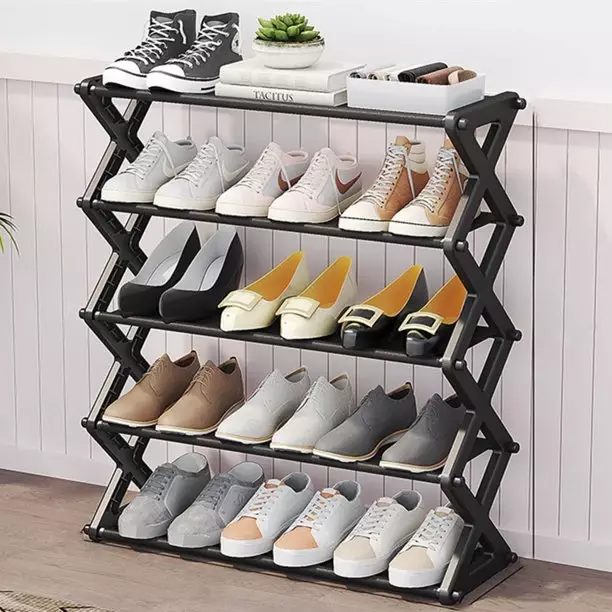رفوف تنظيم الأحذية من خمس طبقات - أسود