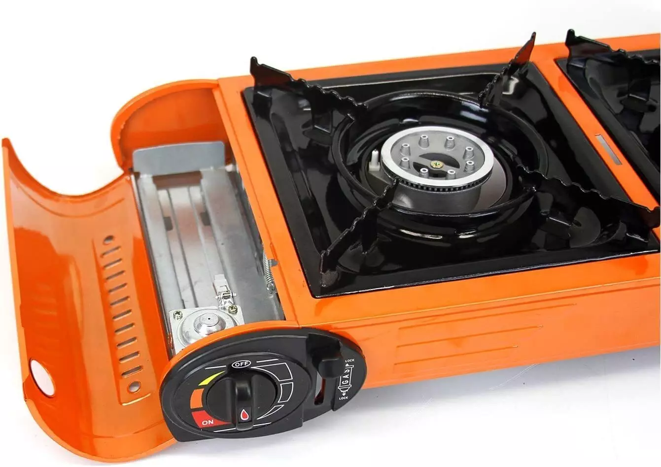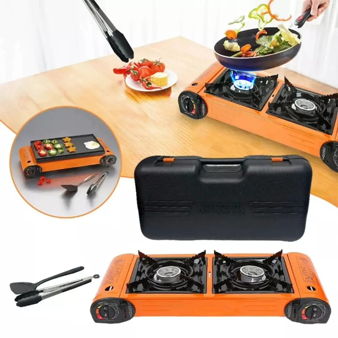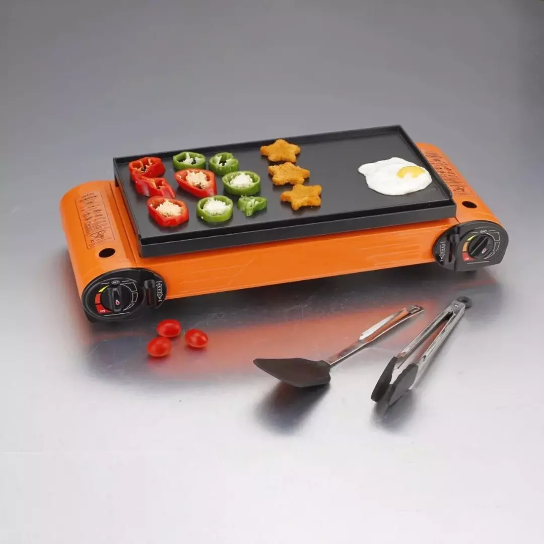 تم تصميم الموقد لسهولة الاستخدام مع اسطوانتين غاز صغيرتين على كلا الجانبين (غير متضمنة)، مما يوفر تجربة طهي سلسة وخالية من المتاعب في الهواء الطلق