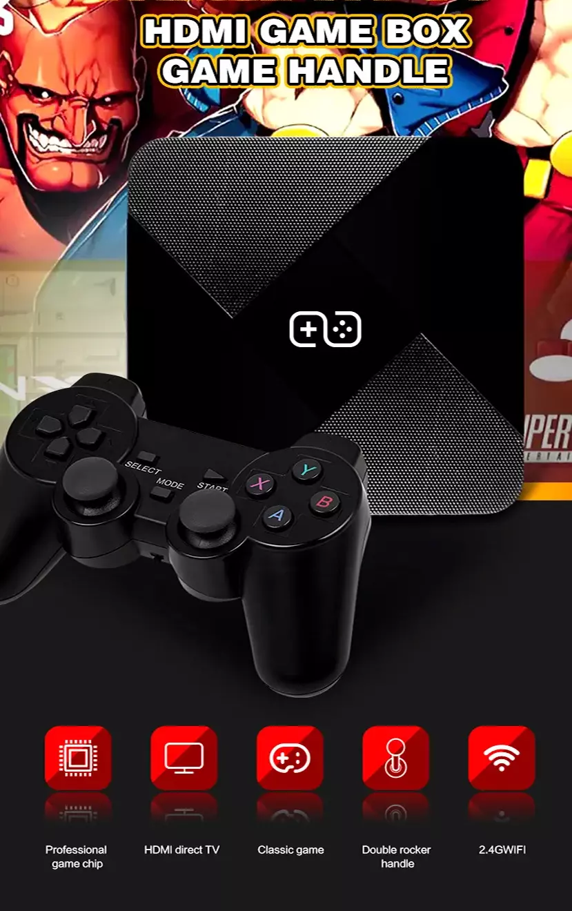 يتميز صندوق الألعاب هذا بمنفذي USB لتوصيل أجهزة متعددة. يتميز بعصا ألعاب 4K فائقة الدقة. يحتوي على شريحة ألعاب احترافية. المنتج لاسلكي 2.4 جيجا ويمكن توصيله بالتلفزيون. يتمتع بسعة ذاكرة عالية تبلغ 64 جيجابايت. هذا المنتج مصنوع من مادة ABS عالية الجودة. إنه محمول وخفيف الوزن. يمكن أيضًا استخدام صندوق الألعاب هذا كصندوق فك التشفير بعد توصيله بالتلفزيون. يأتي صندوق الألعاب هذا مع وحدة تحكم واحدة و2 وحدة تحكم ودليل مستخدم لسهولة الاستخدام.