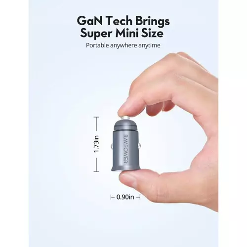شاحن سيارة سريع بقـوة 65 وأط PD بـمنفذين (مصنوع من سبائك الألمنيوم) من رأف بـاور