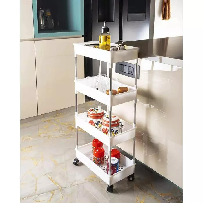 يمكنك الآن تخزين الكتب أو مستلزمات المطبخ مع أرفف تخزين قوية وثابتة. تمتاز الارفف بأنها قابلة للتعديل لسهولة الاستخدام. تضيف العجلات المزودة بالمنظم ميزة رائعة وعملية لسهولة النقل من مكان لاخر