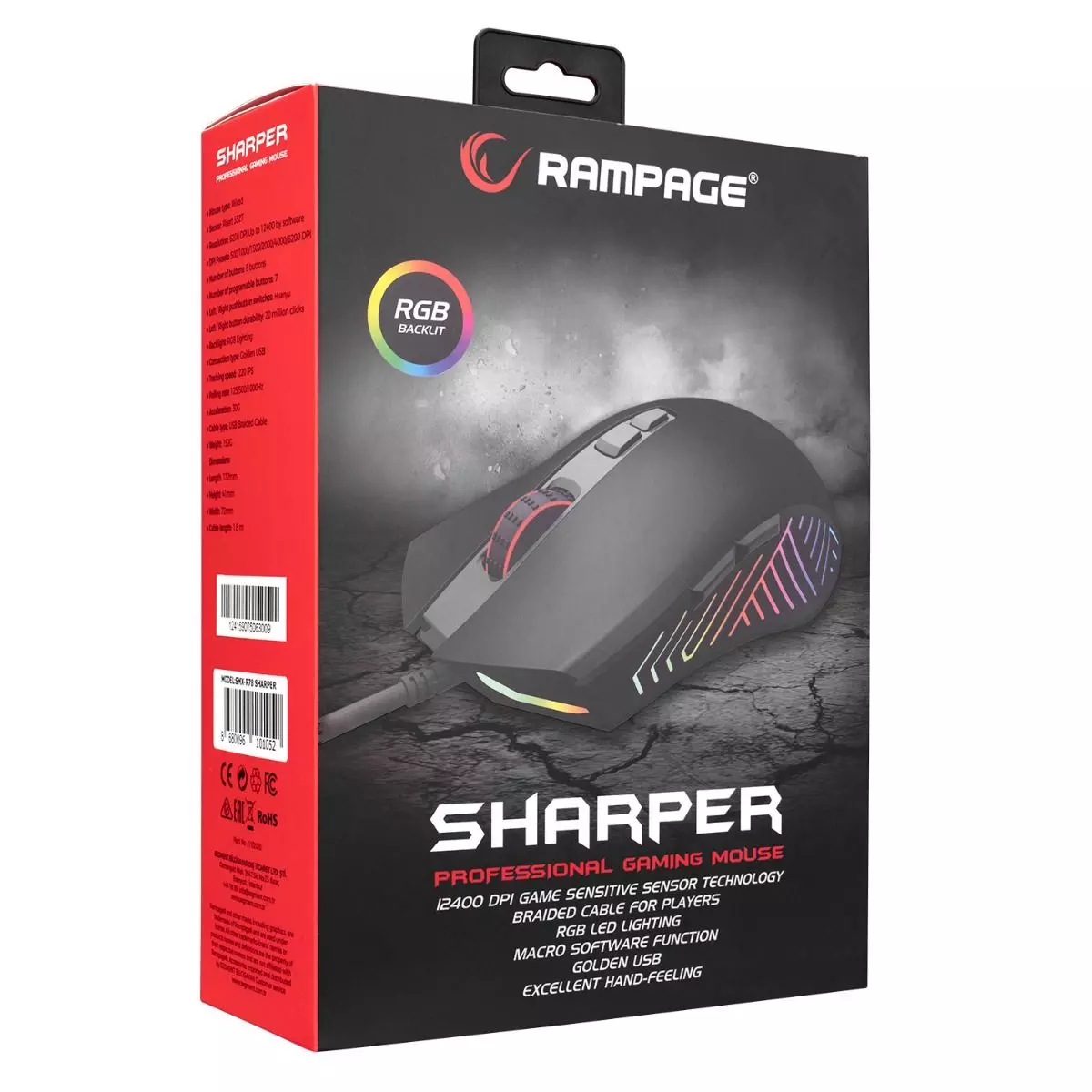 ماوس ألعاب Rampage SHARPER E-SPORTS بدقة 12400 نقطة في البوصة / أسود