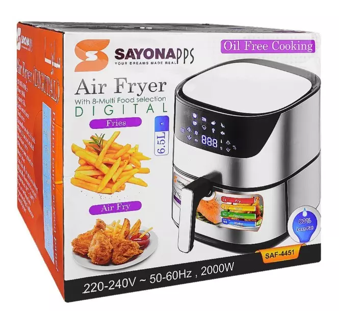 مقلاة هوائية سايونا 6.5 لتر 2000 واط - أسود/فضي