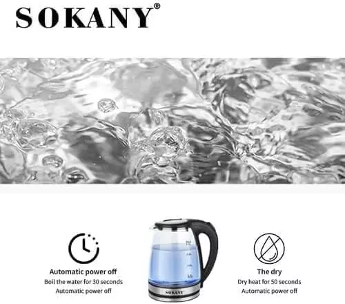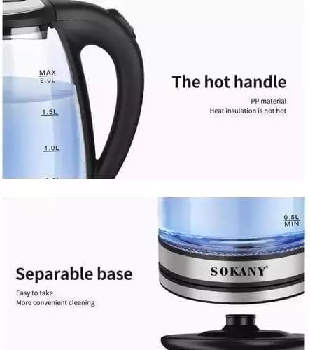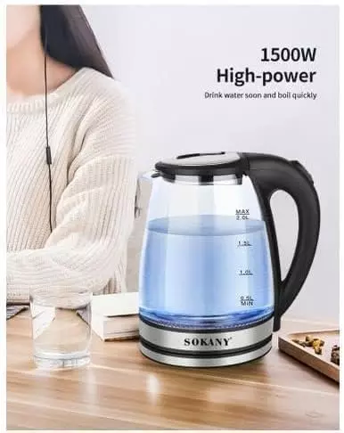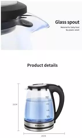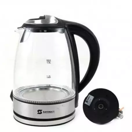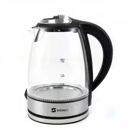 غلاية سايونا الكهربائية الزجاجية SK-4502 هي جهاز عملي وأنيق يسمح لك بغلي الماء بسرعة وسهولة. بفضل قوتها التي تبلغ 1500 واط وسعتها التي تبلغ 1.8 لتر، فهي مثالية للاستخدام اليومي.