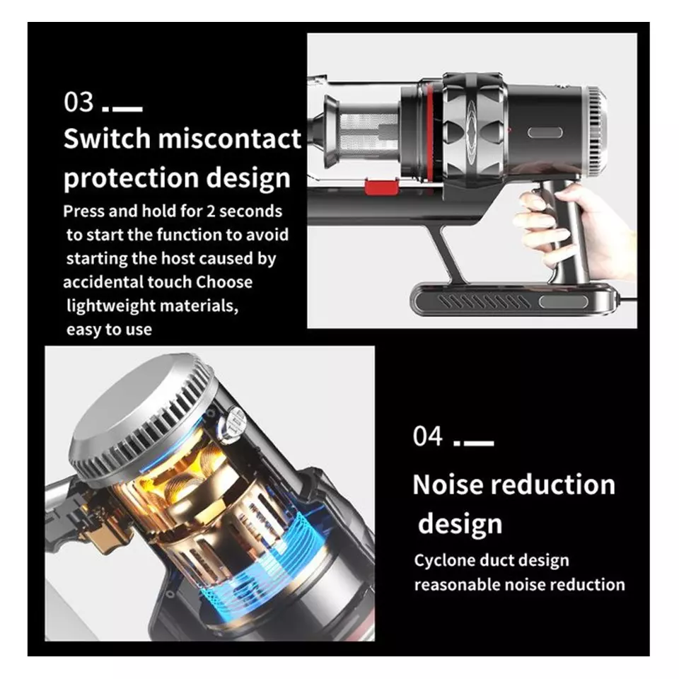 • يتحرك رأس المكنسة بعدة اتجاهات لليمين واليسار والأعلى والأسفل