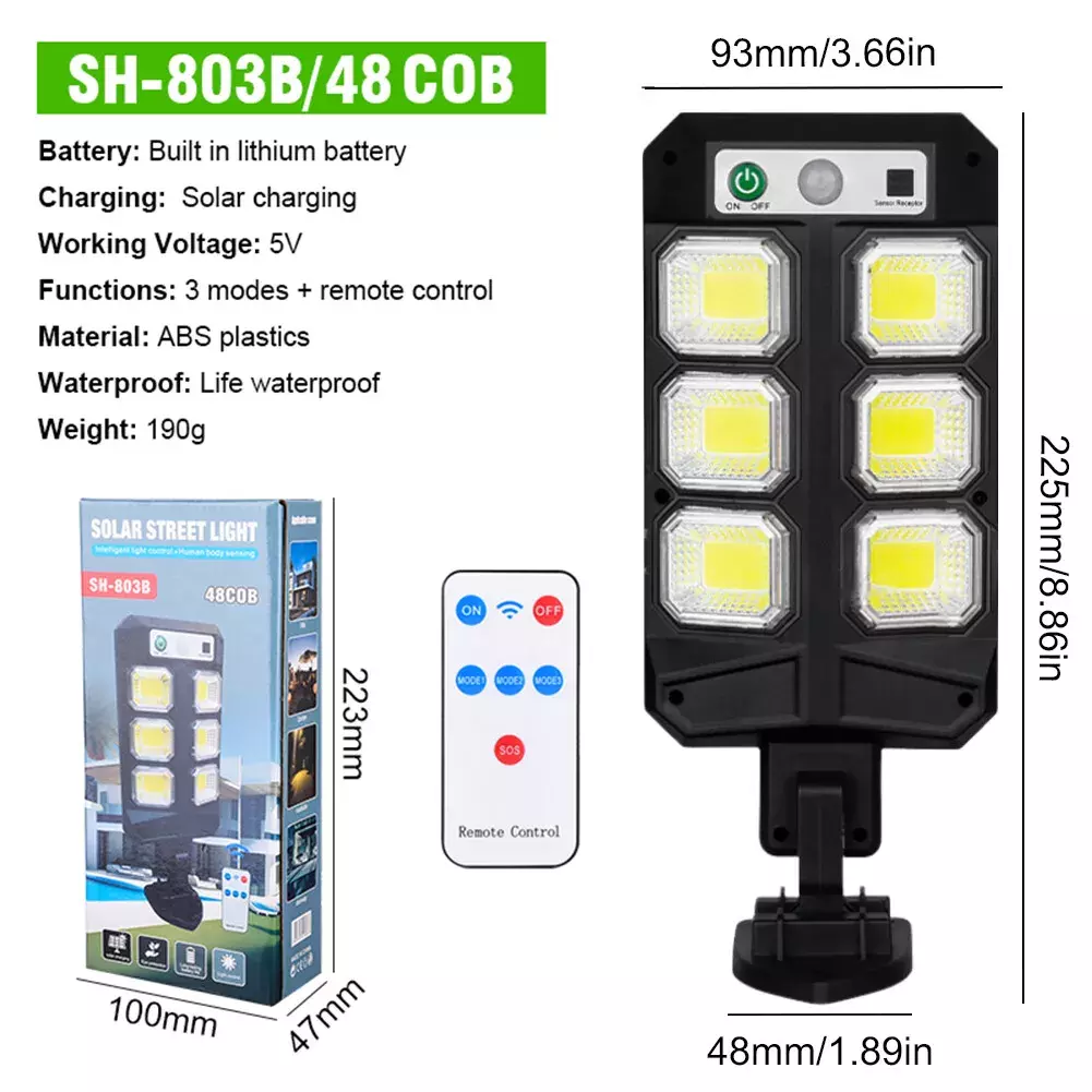 مصباح شارع يعمل بالطاقة الشمسية مع مستشعر حركة مقاوم للماء وجهاز تحكم عن بعد
