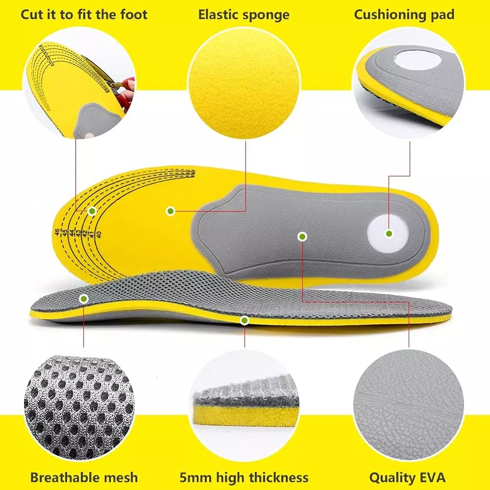 نعل داخلي رياضي لامتصاص الصدمات ومزيل العرق وجيد التهوية وتصحيح قوس القدم المسطح