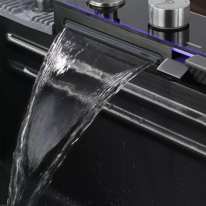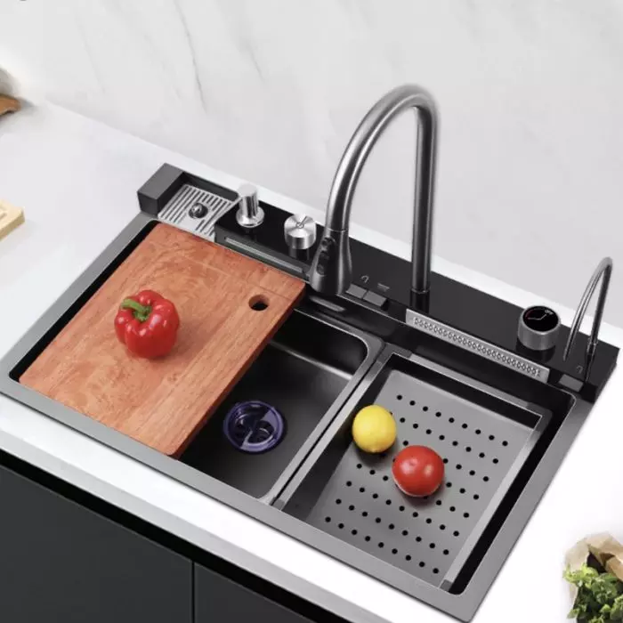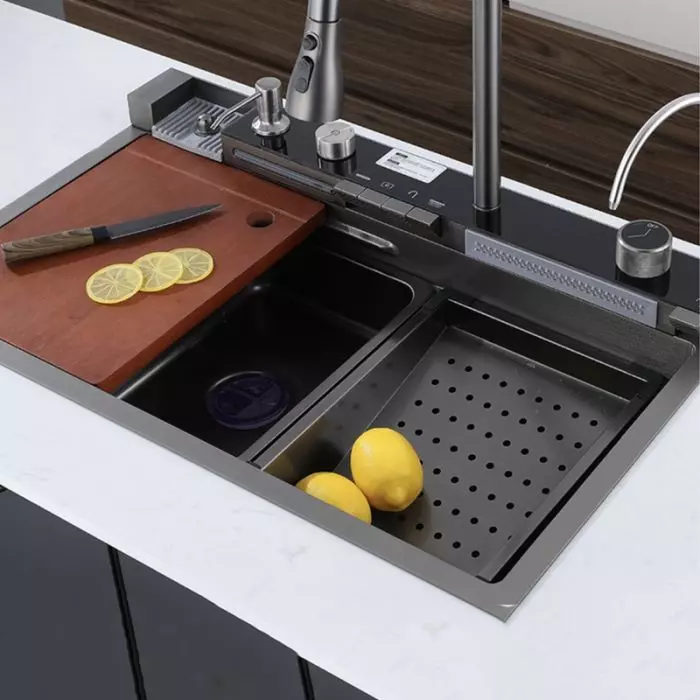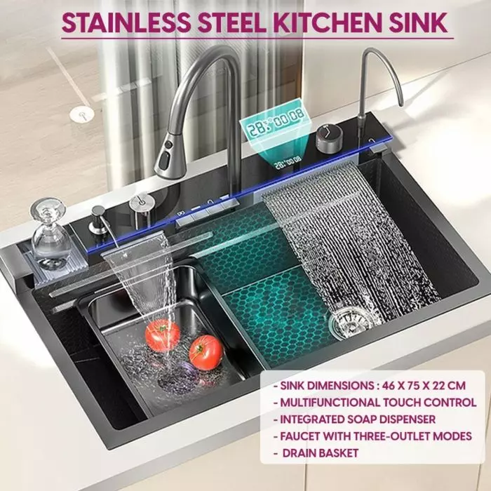 حوض مطبخ من الستانلس ستيل مع صنبور وشاشة ديجيتال