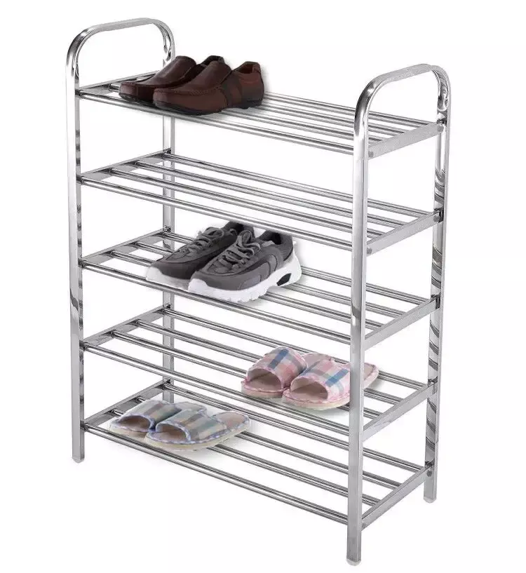 رف مفتوح: توفر 5 رفوف مفتوحة تخزينًا منزليًا مثاليًا لأحذيتك، يمكن لجدار الأنبوب السميك المصنوع من الفولاذ المقاوم للصدأ أن يتحمل المزيد من الوزن وليس من السهل ثنيه وكسره.