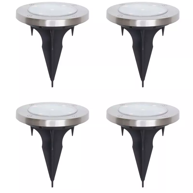 مجموعة من 4 مصابيح LED للممرات تعمل بالطاقة الشمسية من الستانلس ستيل